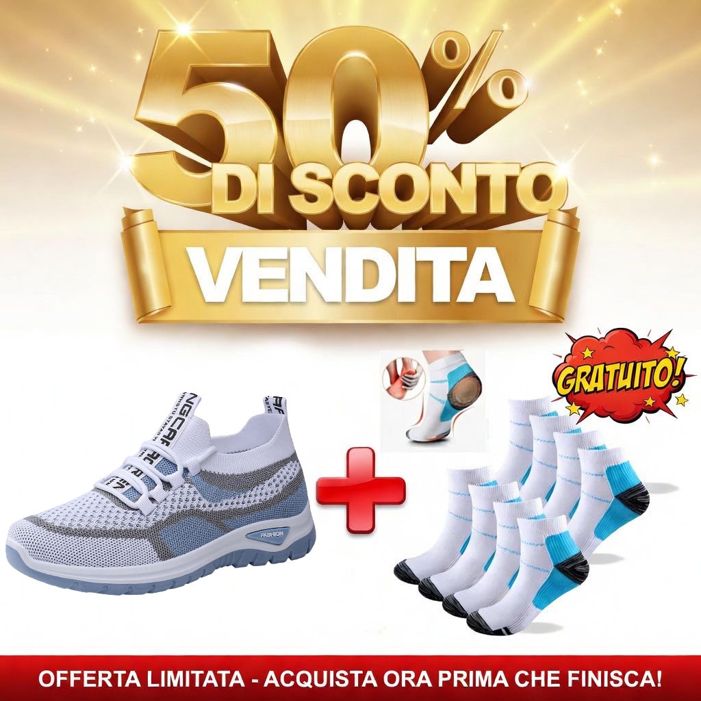 ✅ Gli ordini effettuati oggi riceveranno in omaggio un paio di calzini ortopedici premium (per alleviare il dolore ai piedi) del valore di 19 €.